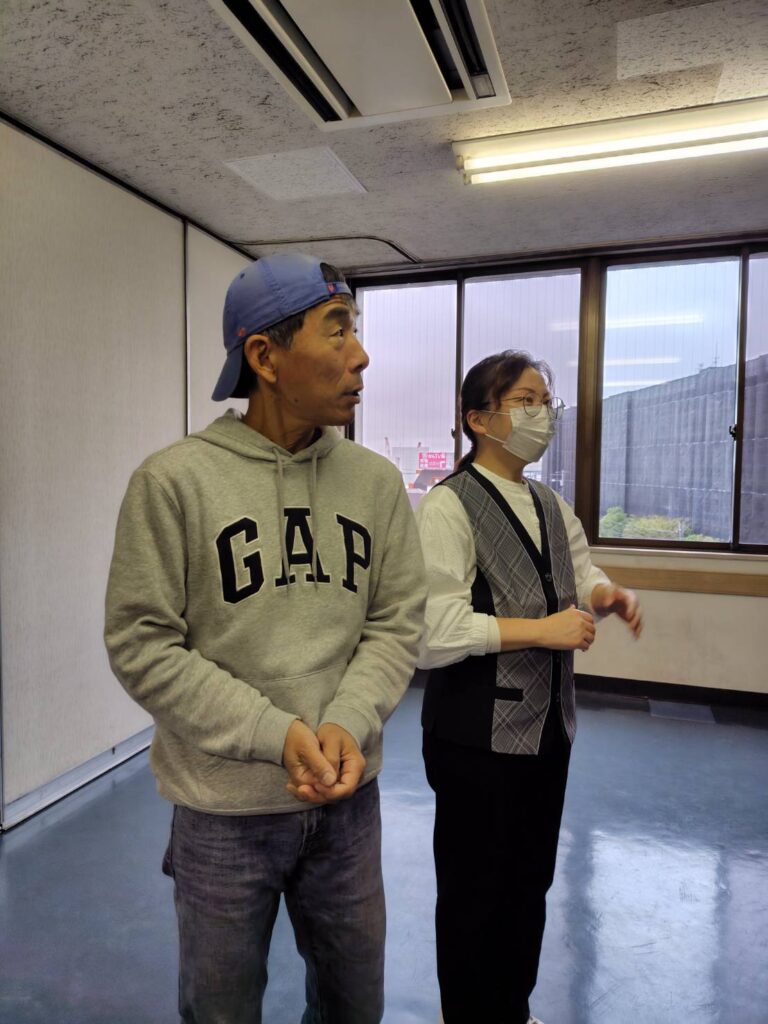 今日は超久々の大会議室での稽古大、って感じですね。 小さい舞台がついているのでせっかくなのでそこで稽古しましょう