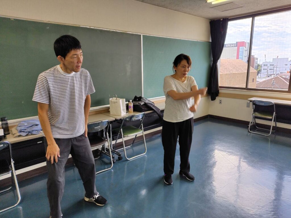 今日は少人数で稽古する部分稽古の日 追加稽古なので参加できるメンバーだけでの稽古ですやれることは限られますが、 その分、全体の稽古ではなかなか練習できない部分をつめていったり、 その人個人に合った練習をしたりできます 午前は・・・たかみーとあきちゃん編