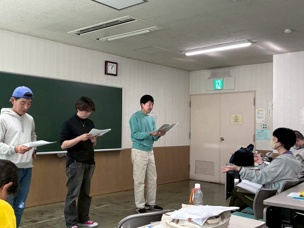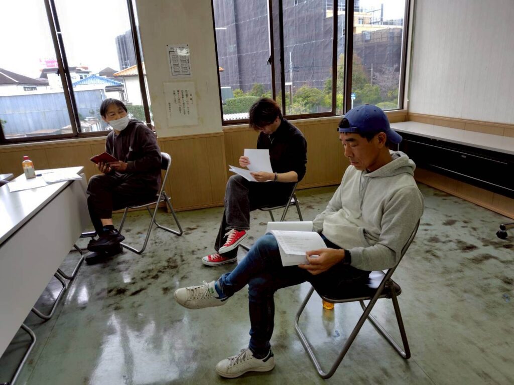 みなさま真剣に本読み中。 さあ、無事に台本もとってきたので稽古していきましょう!!