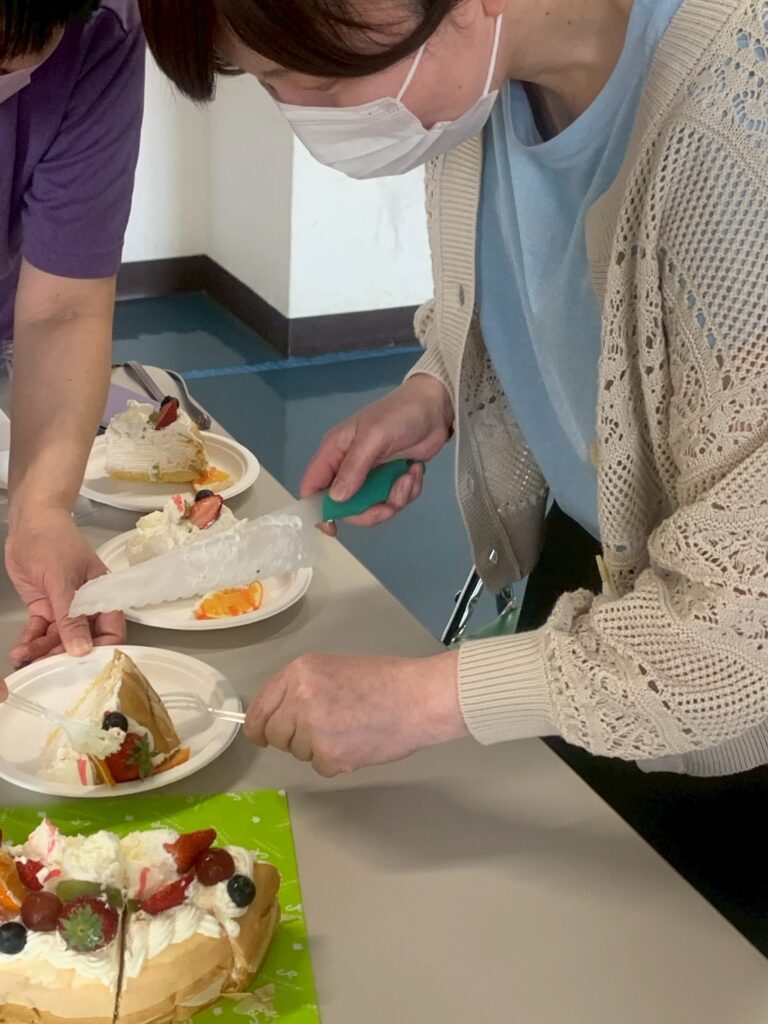 やっぱり誕生日の人が切り分けるというお仕事があるのです・・・