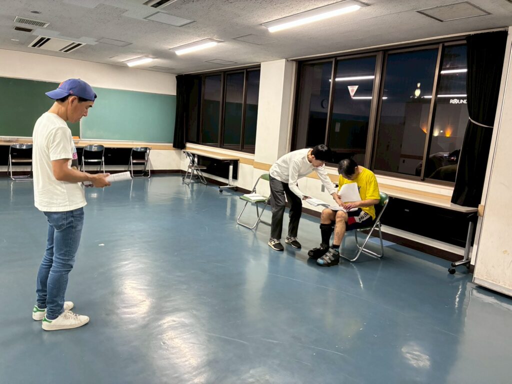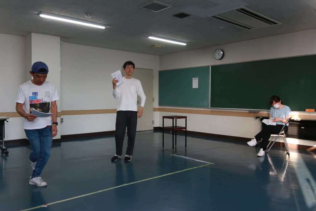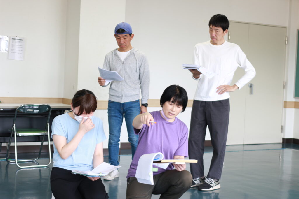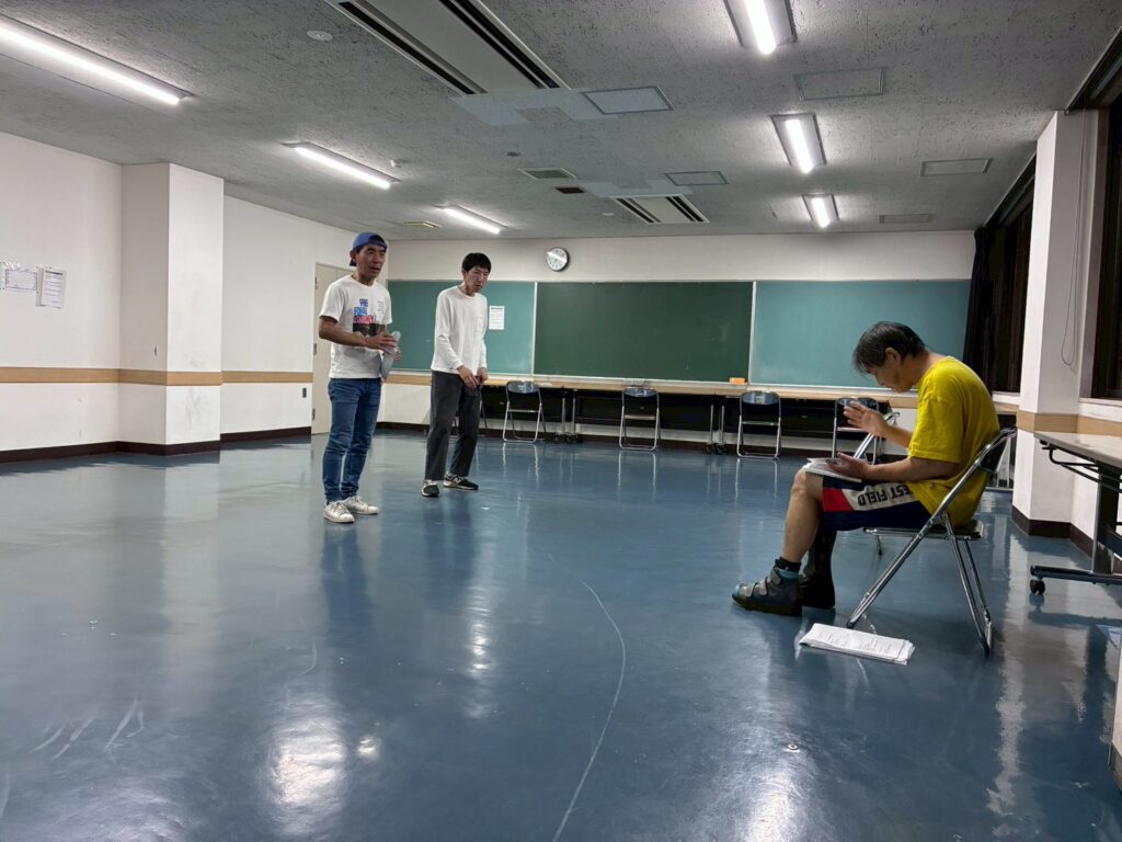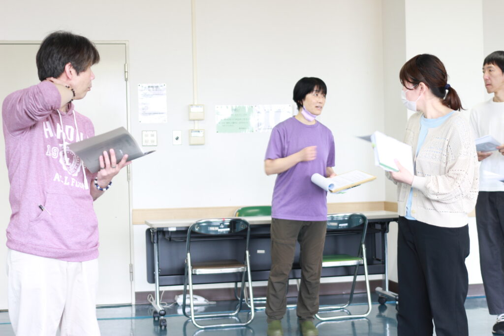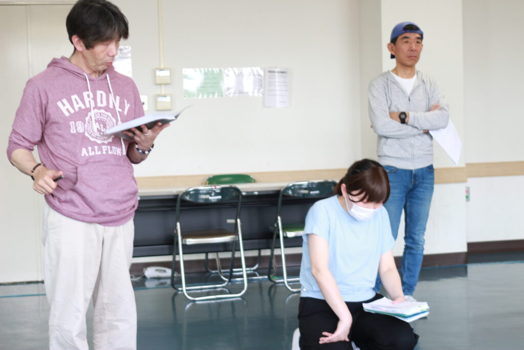 ↑これも発声? まあ、発声っちゃあ発声ですね さあ、喉もあったまったところで練習開始! 今日の前半稽古は、お芝居の後半部分(ややこしい) 真剣なシーンなのでみんなも力が入ります