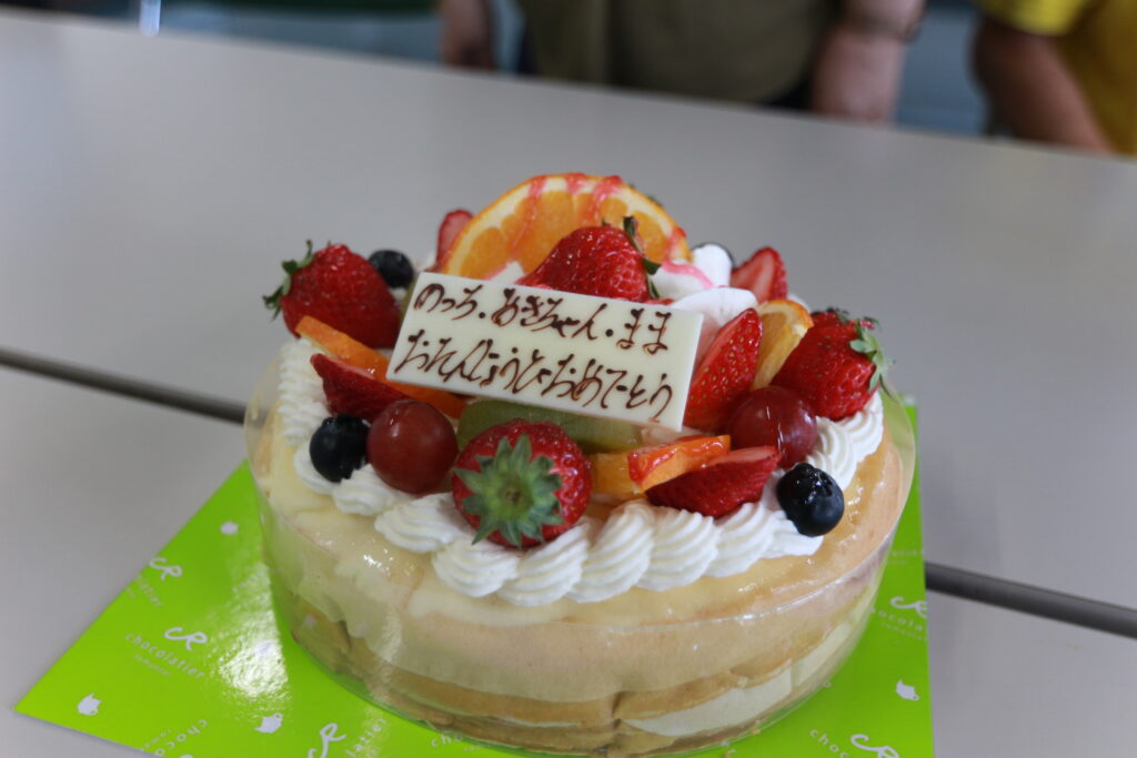 さあ、頑張ったらあっという間にお昼ご飯 今日は・・・4月のお誕生日ケーキもあります