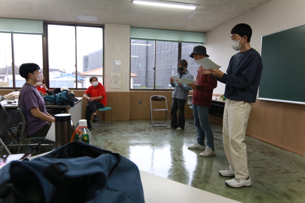 いろいろな配役で繰り返したあと、今日の配役を決めて少し練習。