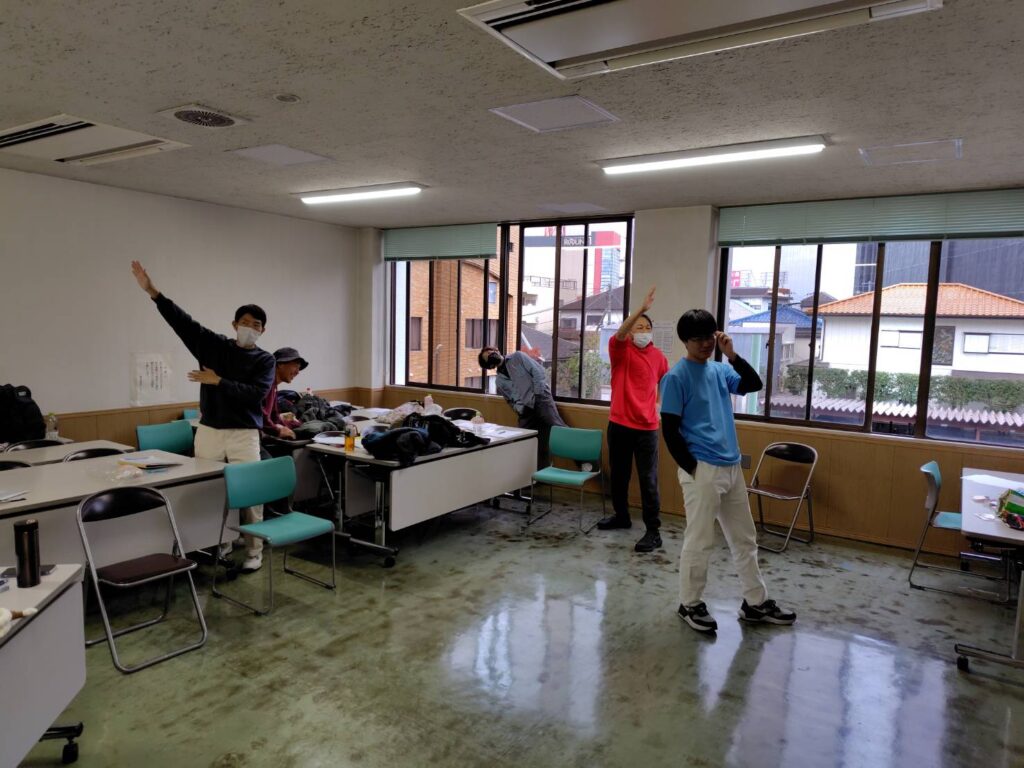 軽く体を動かして、発声です。